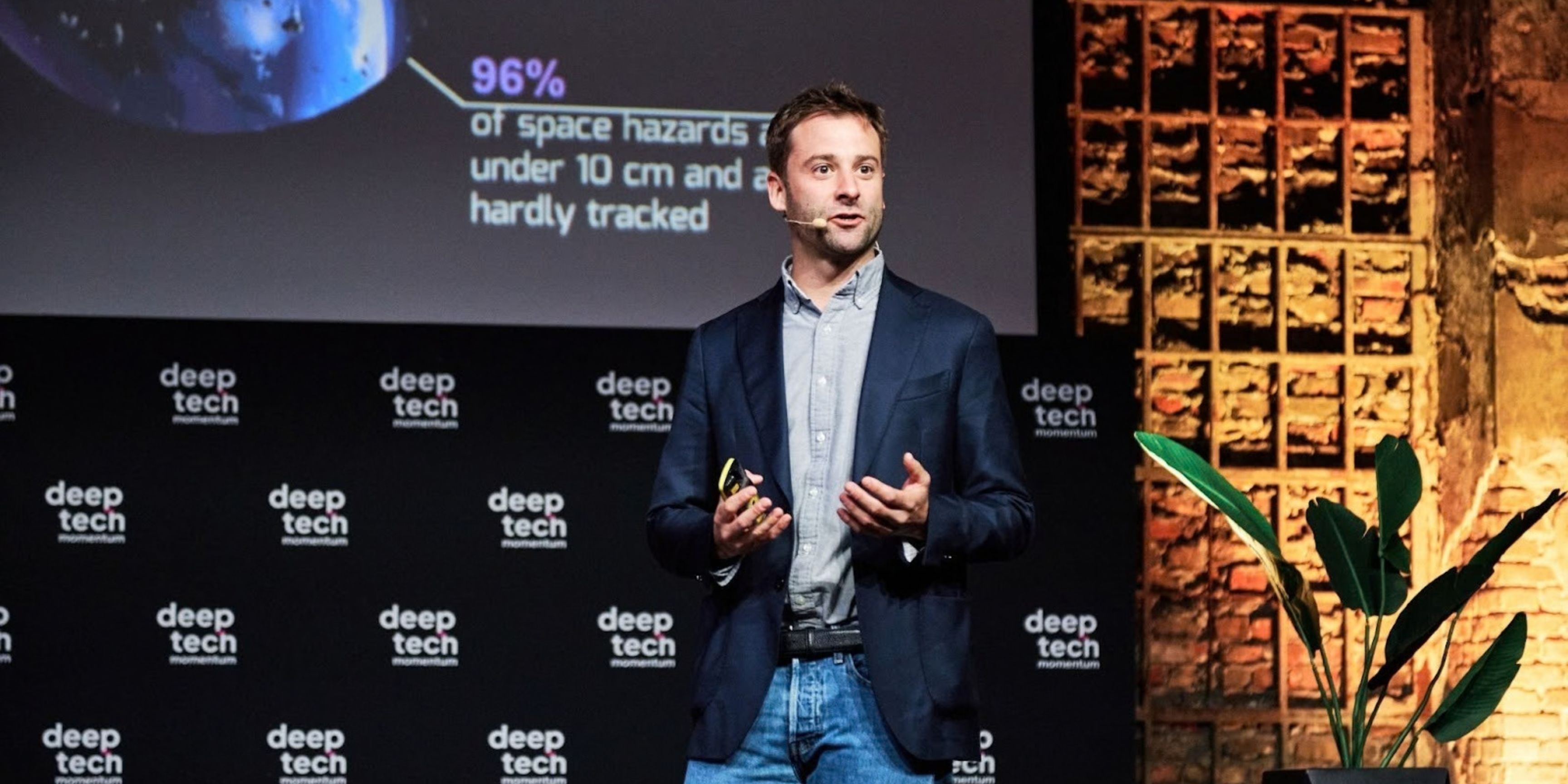 Spaceflux CEO Marco Rocchetto onstage as a finalist for the DTM100 (May 2025). A couple of months later, the company announced a £5.4m ($6.8m) Seed round led by the UK Innovation & Science Seed Fund and Foresight Group.